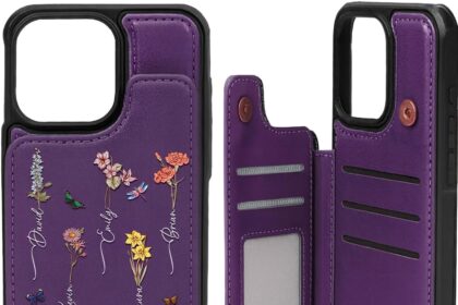 Grandma Personalized Leather Flip Wallet Phone Case – Custom Family Names Phone Cover for Mom, Nana – Little Sweethearts Gift for Mother’s Day, Christmas, Birthday (Grandma’s Garden)