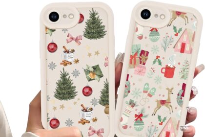 2 Pack Merry Christmas Phone Case for iPhone 16e 6.1″, Cute Xmas Tree Bow Pattern Cover with Aesthetic Decorations Gifts Pattern,Shockproof Anti-Scratch Protection Funda for Girls Women