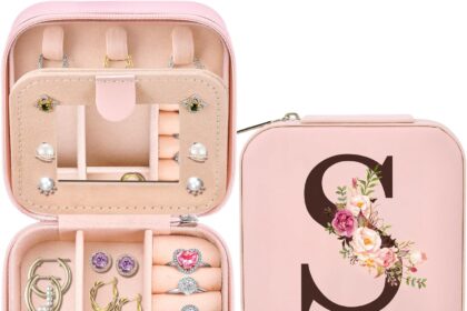 Inngeroo Mothers Day Mom Gifts for Wife Daughter Grandma, Travel Jewelry Case Box Organizer, Personalized Gifts for Women Teen Girls Mom Aunt Sister, Bridesmaid Gifts Traveling Essentials, Initial S
