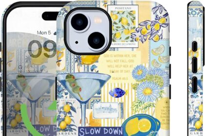 for iPhone 15 Case Italy Europe Summer Vintage Blue Flowers Yellow Lemon Motivational Quotes Collage Aesthetic [Compatible with Magsafe] Rugge Shockproof Anti-Scratch Phone Case