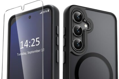 YENAPOON for Samsung Galaxy S25 Case, Matte Magnetic Phone Case with 1 Screen Protector, Support for Magsafe, Translucent Frosted Shockproof Protective Cover for Samsung Galaxy S25, Black
