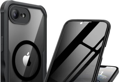 seacosmo for iPhone 17e 16e Case, Full Body Bumper with Built-in Tempered Glass Privacy Screen Protector and Camera Lens Protection, Compatible with MagSafe, Shockproof 17E 16E Phone Case, 6.1″, Black