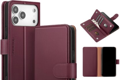 Shieldtop Compatible with iPhone 17 Pro Max Wallet Case with Card Holder,Women Men RFID Blocking PU Leather Folio Flip TPU Protective Cover Credit Card Slots,Phone Case for Apple 17 Pro Max,Wine Red