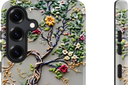 Esdot for Samsung Galaxy S25 Case – Wireless Charging Compatible – Dual-Layer Soft Silicone + Hard Shell – Wildflower Design – Protective Phone Cover for Women Girls – Tree of Life