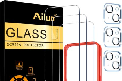 Ailun 3 Pack Screen Protector for iPhone 15 [6.1 inch] + 3 Pack Camera Lens Protector with Installation Frame,Case Friendly Tempered Glass Film,[9H Hardness] – HD