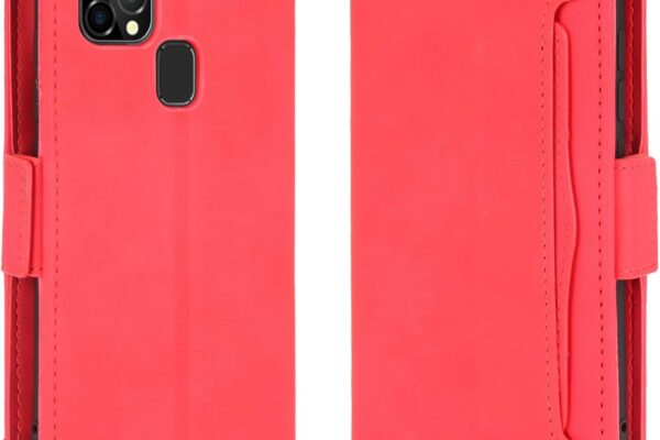 Case Compatible with Oukitel C22, Leather Flip Cover Card Holder Stand Cell Accessories Phone Cases Red