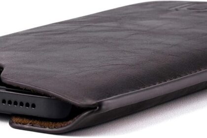 Dockem Executive Sleeve for iPhone 12-16 Pro Max, 14-16 Plus (6.7 inch) – Slightly Padded Vegan Leather w/Microfiber Lining – Slim Slip-on Case [Dark Brown]
