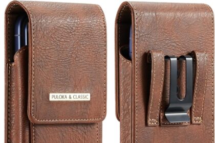 Phone Holster with Belt Clip for iPhone 17/16/15/14/13/12 Pro Max & Plus, Galaxy S26/S25/S24/S23 Ultra & Plus, Premium Leather Pouch with Card Holder, Magnetic Closure, Rugged Outdoor Case – L Brown