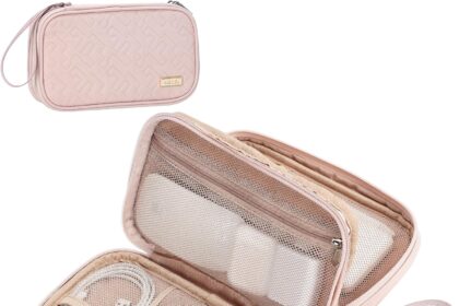 NISHEL Travel Cord Organizer Case, Double Layers Tech Electronic Bag, Essentials for Charger, Cable, Phone, Flash drive, Medium, Pink