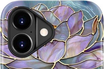 DorisMax for iPhone 17 Case – Wireless Charging Compatible – Dual-Layer Hard Shell + Silicone Cover – Shockproof Protective Phone Case with Stylish Designs for Women – Abstract Lotus