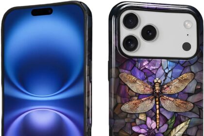 for iPhone 17 Pro Max Case, Stained Glass Dragonfly Pattern Glossy 2 in 1 Shockproof Bumper Drop Protective Silicone and PC Case for Girl Women Boy Men