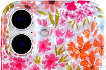 Qokey Compatible for iPhone 16 Case 6.1″,Cute Garden Flowers Design for Women Shell Pattern Soft Bumper Lightweight Slim Fit TPU Shockproof Non-Yellowing Phone Cover for iPhone 16, Pink Floral
