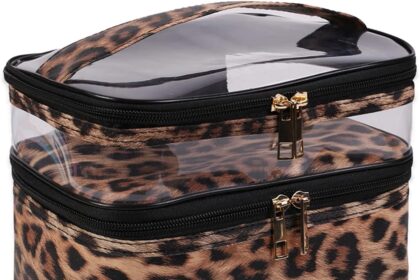 Double-layer Cosmetic Bag Makeup Bag Travel Makeup Bag Makeup Bags for Women Cosmetics Cases Portable Waterproof Foldable (Leopard)