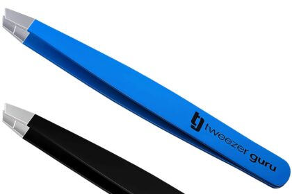 TWEEZER GURU 2 piece – Slant Pointed Precision Tweezers for Eyebrows, Ingrown Hairs, Blackheads – Sharp Needle Nose for Plucking, Splinters