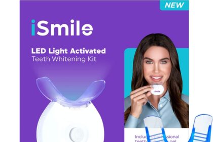 iSmile Teeth Whitening Kit – LED Light, 35% Carbamide Peroxide, (3) 3ml Gel Syringes, (1) Remineralization Gel, and Tray.