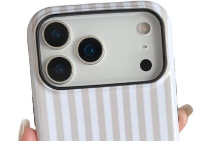 Longlayss Compatible with iPhone 17 Pro Max Case Cute Aesthetic Striped Phone Case for Women Girl Shockproof Slim TPU and Hard PC Protective Cover (Antique White)