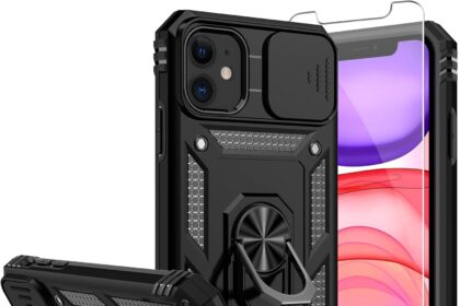for iPhone 11 Case,with Screen Protectors and Camera Cover,[Military Grade] 16ft.Drop Tested Cover with Magnetic Kickstand Protective Case for iPhone 11 6.1 inch, Black
