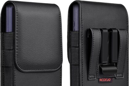 ACCKUO Leather Phone Holster with Strong Metal Belt Clip and Magnetic Closure Compatible with Samsung Galaxy S25/S24/S23/S22/S21/S20 Ultra, XL-Black