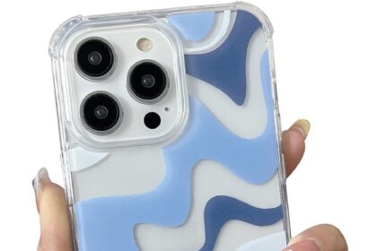 Compatible with iPhone 14 / iPhone 13 Phone Case, Cute Art Wavy Painted for Women Girls, Soft TPU Edge PC Back Protective Shockproof Phone Case-Blue (iPhone 14 / iPhone 13)