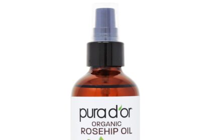 PURA D’OR 4 Oz ORGANIC Rosehip Seed Oil – 100% Pure Cold Pressed USDA Certified Anti-Aging Treatment – Vitamin A & C Rich – Helps Fade Appearance of Scars & Stretch Marks – For Face, Hair & Body