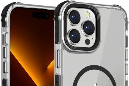 DEERLAMN Strong Magnetic Case for iPhone 15 Pro Max 6.7-Inch,[Compatible with Magsafe][Military Grade Drop Protection] Clear Slim Shockproof Protective Phone Cover-Transparent+Black