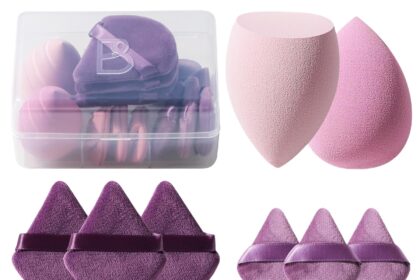 Makeup Sponge Set BS-MALL Triangle Puff 14 Pcs for Liquid, Cream, and Powder, Multi-colored Makeup Sponges and Mini Sponge with Case (A-Purple)