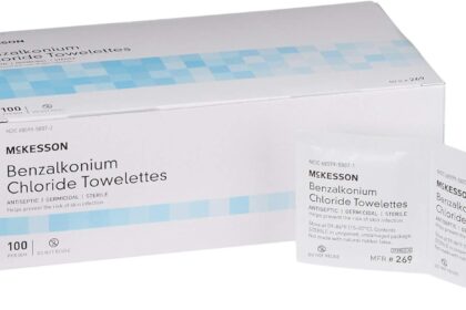 McKesson Benzalkonium Chloride Towelettes [Pack of 100] First Aid Antiseptic Wipes, Sterile Individual Wrapped