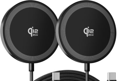 25W Magnetic Wireless Charging Pad: Qi2.2 Qi2 MagSafe Fast Charger for Google Pixel 10 iPhone 17 16 Pro Max 16e 15 14 13 12 AirPods & Samsung Galaxy Series Gift Ideal for Desk & Travel (Black, 2Pack)