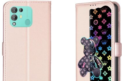 Case Compatible for Blackview A55 Pro Phone Case Flip Stand Cover [with Tempered Glass Screen Protector] JXX-Pink
