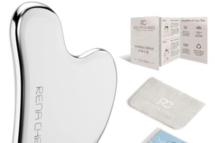 Rena Chris Gua Sha Facial Tools, Stainless Steel Guasha Tool for Acupuncture, Manual Massage Tool for Jawline Sculpting and Puffiness Reducing, Gua Sha Facial Massage Tool, Skin-Care Gift (Silver)