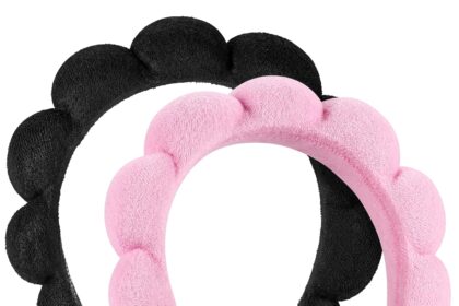 Ztomine Spa Headbands for Washing Face or Facial, Set of 2 Skincare Headbands, Terry Cloth Headband Wash Combo Pack – Puffy Makeup Washing, Mask, Skin Treatment (Black & Pink)