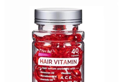 Pure Bali Hair Vitamins Moroccan Oil Capsules for Women & Men – Serum Enriched with Argan Oil & Avocado Oil for All Hair Type Frizzy Dry Curly – Vitamin A, E, Pro B5 (40 Capsules)