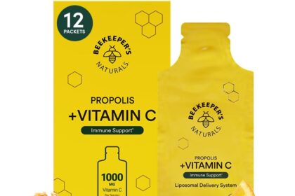 Propolis Liposomal Vitamin C by Beekeeper’s Naturals, 1000mg Vitamin C, Propolis & Organic Honey, Supercharged Immune Support & Increased Bioavailibity for Max Absorption, 12 Ct