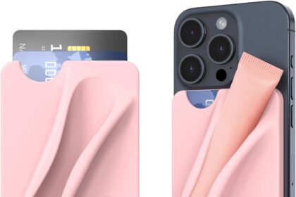 DOB SECHS Silicone Lip Holder with Card Holder Compatible with Lipstick Lip Glaze Phone Case Back Stick On Holder for iPhone and Android Smartphones (Pink, Small)