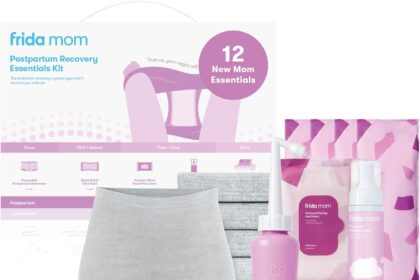 Frida Mom 11pc Postpartum Essentials Kit Gift Set, Hospital Bag Must Haves for New Mom, Includes 4 Disposable Postpartum Underwear, 4 Ice Maxi Pads, Perineal Healing Foam & 24 Pad Liners & Peri Bottle