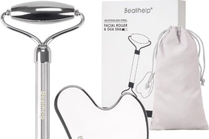 Bealihelp Face Roller and Gua Sha, Stainless Steel Facial Roller and Guasha Tool for Face, Skin Care Roller for Wrinkles and Lifting, Improve Puffiness, Metal Face Massager for Eyes, Neck Tighten