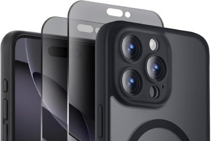 Symcele Designed for iPhone 16 Pro Case, Compatible with MagSafe, with Privacy Screen Protectors X2, [Camera Protection] [15FT Military Drop Protection] Shockproof Phone Case, 2024, Black