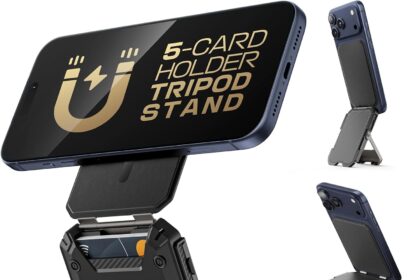 SUPCASE for MagSafe Wallet with Stand, Magnetic Wallet for Men, [Hold 5 Cards] [Adjustable Stand] [RFID Blocking] Phone Credit Card Holder Tripod for iPhone 17/16/15/14/13/12 Series, Black