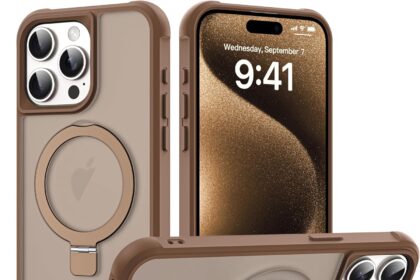 SKYLMW Compatible with iPhone 15 Pro Max Case with Invisible Magnetic O-Ring Stand Military-Grade Translucent Case for iPhone 15 ProMax 6.7″ [Compatible with Mag-Safe][Great Grip Feeling],Desert Brown