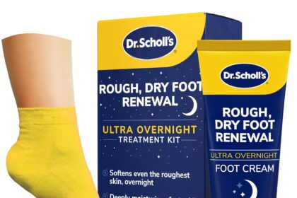 Dr. Scholl’s Rough, Dry Foot Renewal Ultra Overnight Treatment with Overnight Foot Cream 3oz with Aloe, Coconut Oil & Urea and Heel Sleeve Socks, Deeply Moisturize & Soften Feet, Dermatologist Tested