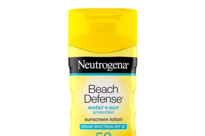 Neutrogena Sunscreen Lotion Beach Defense SPF 50, Face and Body Sunscreen, Hawaii Reef Act 104 Compliant, Octinoxate & Oxybenzone Free, Oil Free, Fast Absorbing Sun Care, 6.7 fl oz