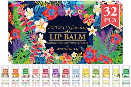 VISRIE 32 Pack Lip Balm, Natural Lip Balm Bulk with Vitamin E and Coconut Oil, Moisturizing Lip Balms for Dry Lips-16 Flavors