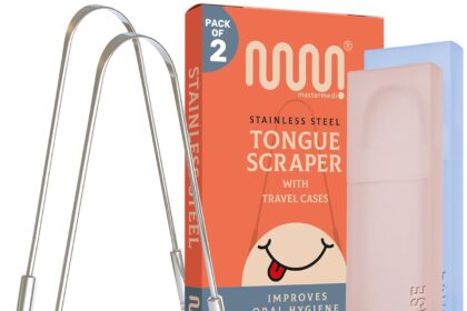 MasterMedi Tongue Scraper for Adults with Multicolor Travel Cases (2 Pack), 100% Stainless Steel, Reduce Bad Breath, Tongue Scrubber, Easy to Use, Tongue Cleaner for Oral Care & Hygiene