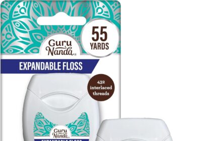 GuruNanda Expandable Waxed Dental Floss for Gentle, Deep Cleaning Wide Teeth Flossing – Peppermint Flavor – 55 Yards