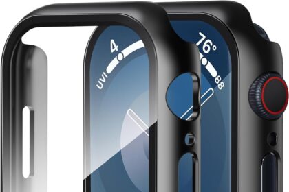 Smiling 2 Pack Case Compatible with Apple Watch SE 3 (2025)/ SE 2/ SE/Series 6/5/4 44mm with Tempered Glass Screen Protector, Hard PC Case Overall Protective Cover – Black