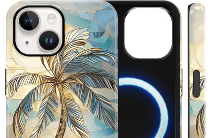 Magnetic Phone Case for iPhone 14 / iPhone 13 6.1″, Stained Glass Summer Ocean Coconut Tree Beach Aesthetic Design Cover, Compatible with Magsafe, Pattern Print 2 in 1 Protection for Women Men