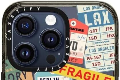 CASETiFY Compact iPhone 17 Pro Case [Slim and Sleek/Compatible with Magsafe / 4 ft. 2X Military Grade Drop Protection] – Stamp Collection – Clear Black