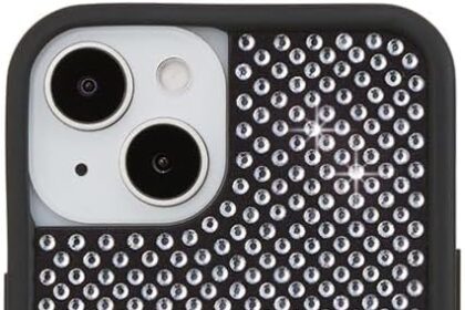 Wildflower Cases – Compatible with iPhone 13/14 | Protective Black Bumper, 6.5ft Drop Test Certified, Women Owned Small Business | Trendy Sparkle New Cute Diamond | Rhinestone Collection – White
