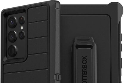 OtterBox Defender Series Case for Samsung Galaxy S22 Ultra (Only) – Holster Clip Included – Microbial Defense Protection – Non-Retail Packaging – Black
