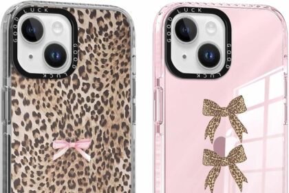 2 Pack Cute Cheetah Print Phone Case for iPhone 13 / iPhone 14 Pink Bow Case 6.1″, Clear Coquette Fashion Luxury Leopard Pattern Design Girls Women Funda Shockproof Soft TPU Protection Cover